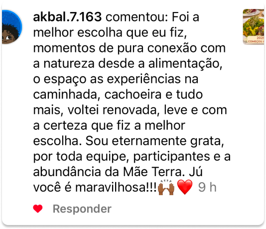 Após curar 2 doenças autoimunes e emagrecer 20 kg com a alimentação viva, tomou como missão difundir esse estilo de vida saudável e natural, por isso criou a Mentoria Regenera, atualmente com alunas nos 6 continentes do mundo.